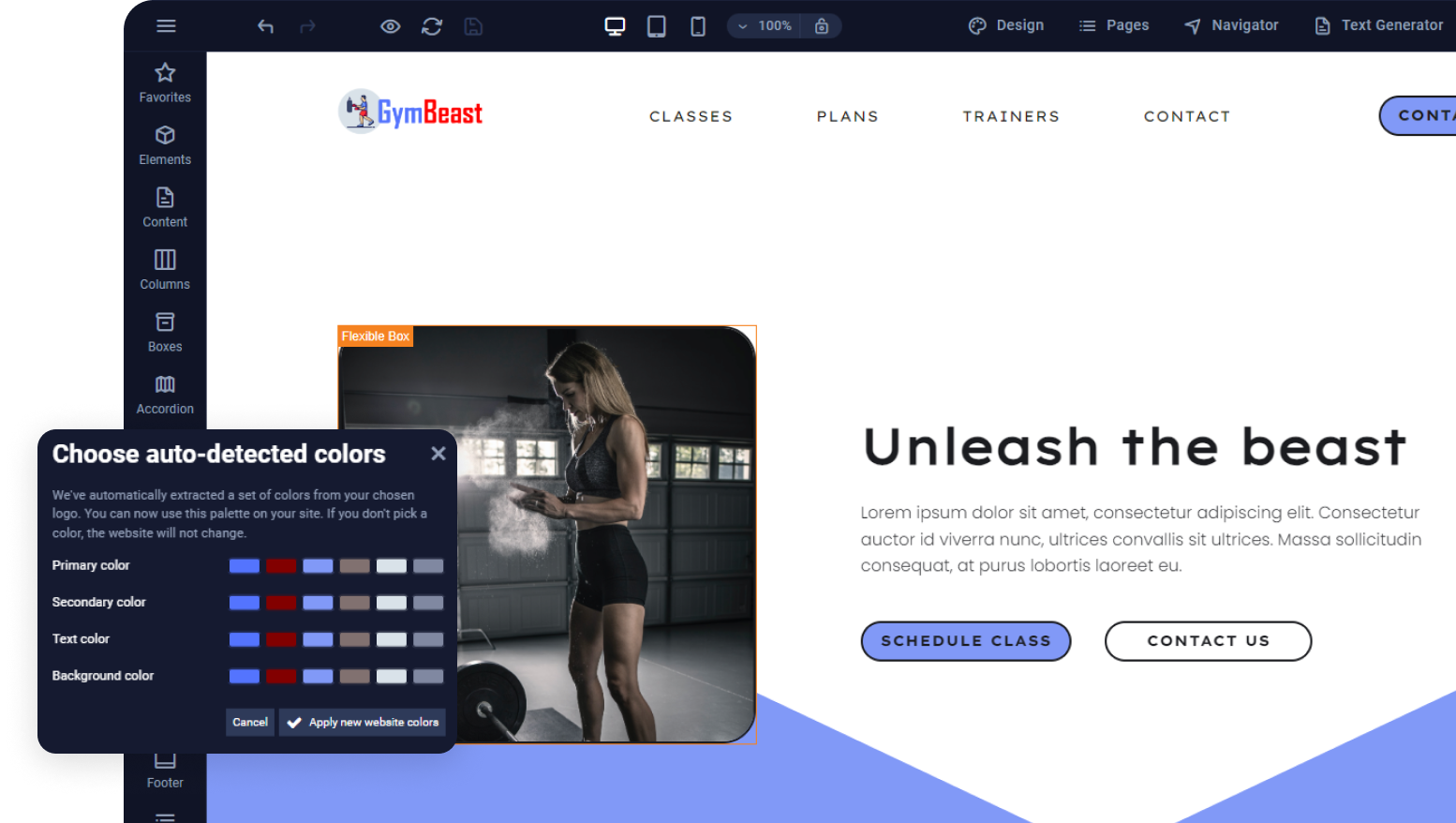 Cree sitios web de marca de manera fácil y global: simplemente cargue un logotipo, observe cómo se extraen los colores corporativos, defina el esquema de colores de su marca e impleméntelo en todo el sitio web.